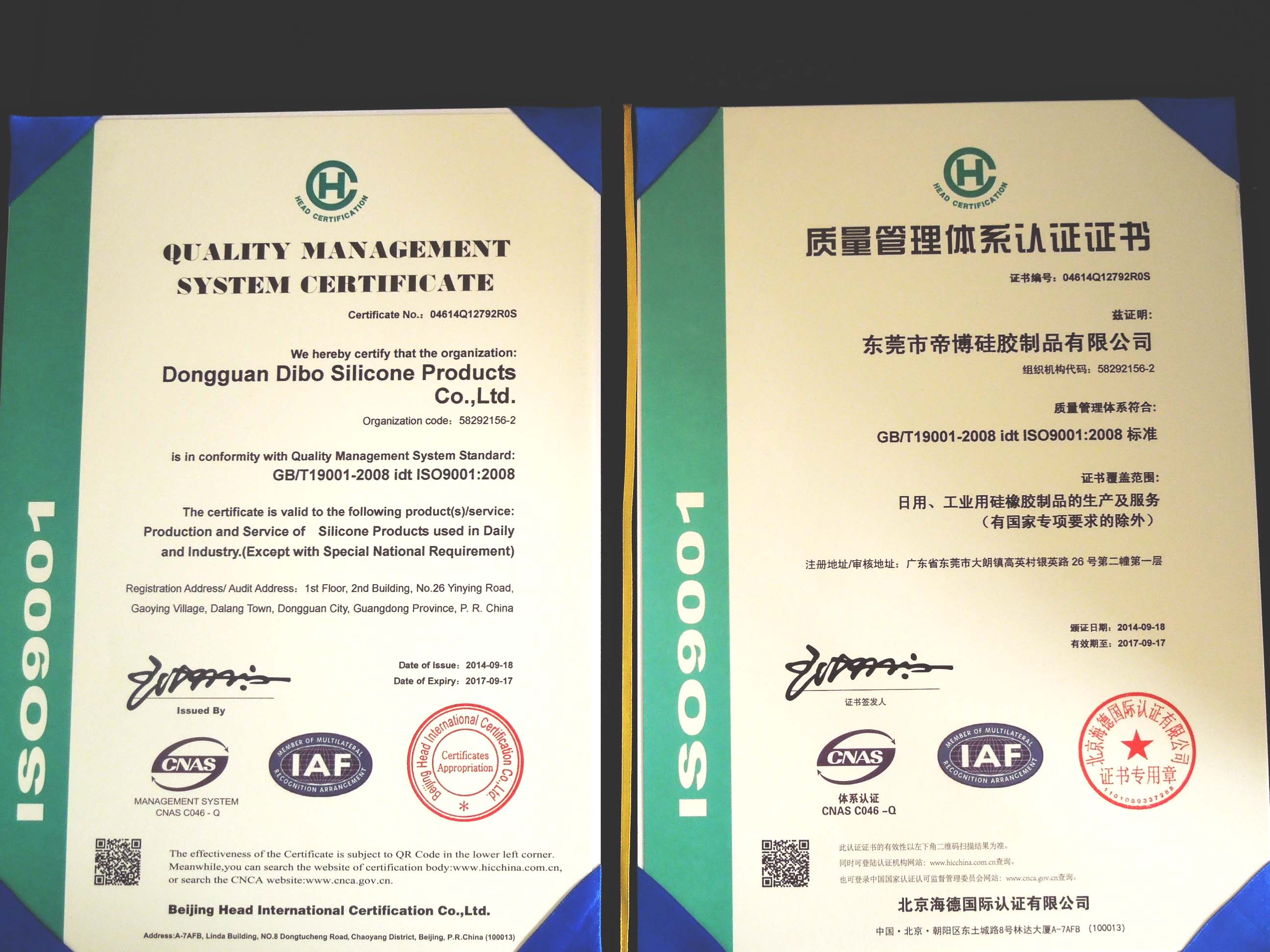 目前,公司已經(jīng)順利通過ISO9001質(zhì)量管理體系認證,并取得相關(guān)證書,